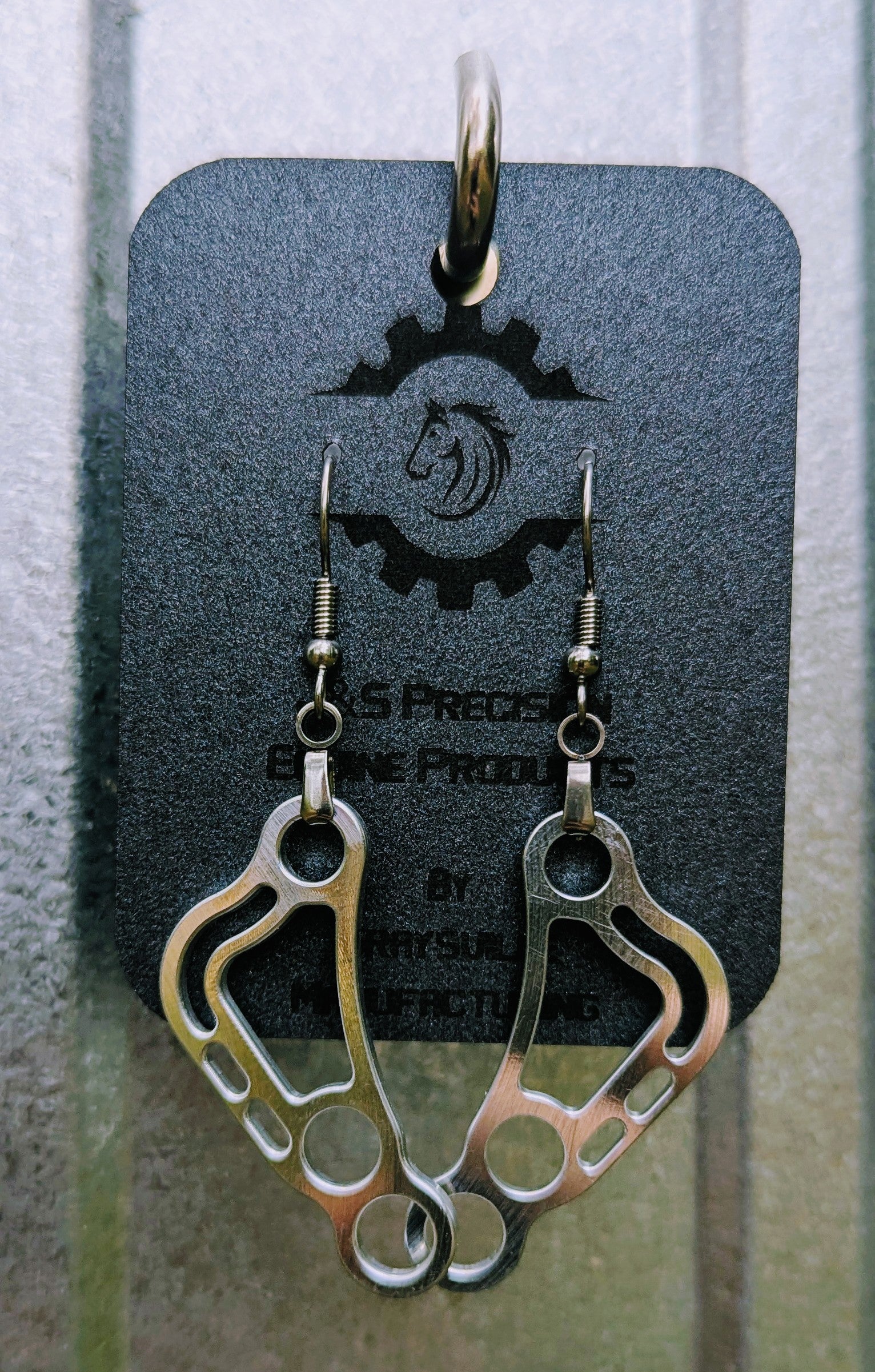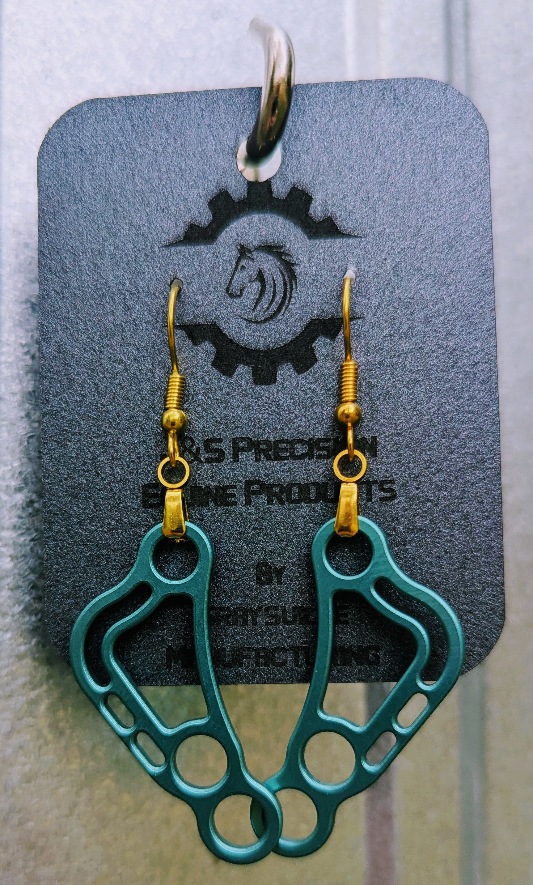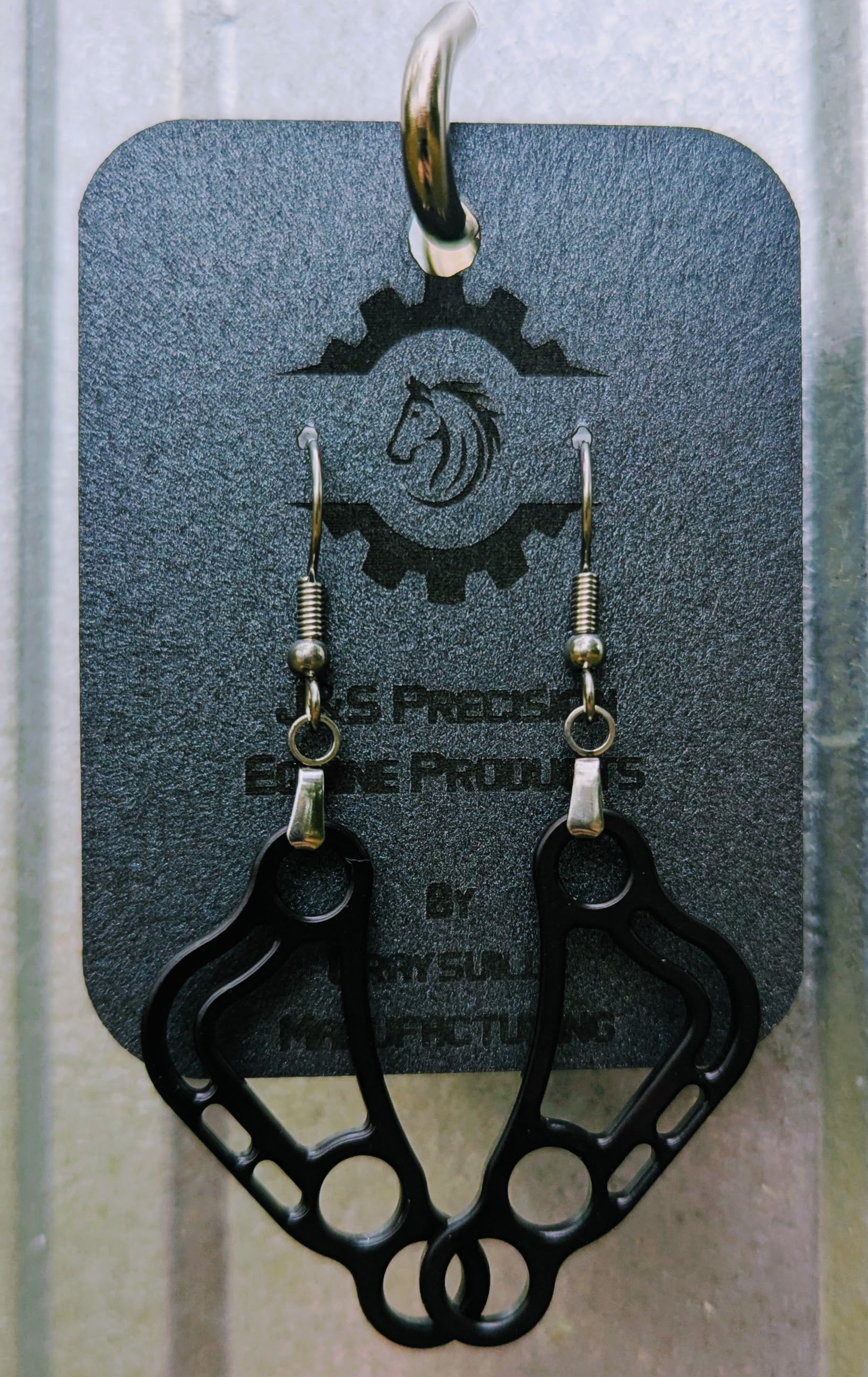 Made with the same aircraft grade aluminum and CNC machined in shop for precision, these earrings match your horse in every way! Show your love for your hooved best friend, your commitment to being extra, and your love for all things USA made with a set today!