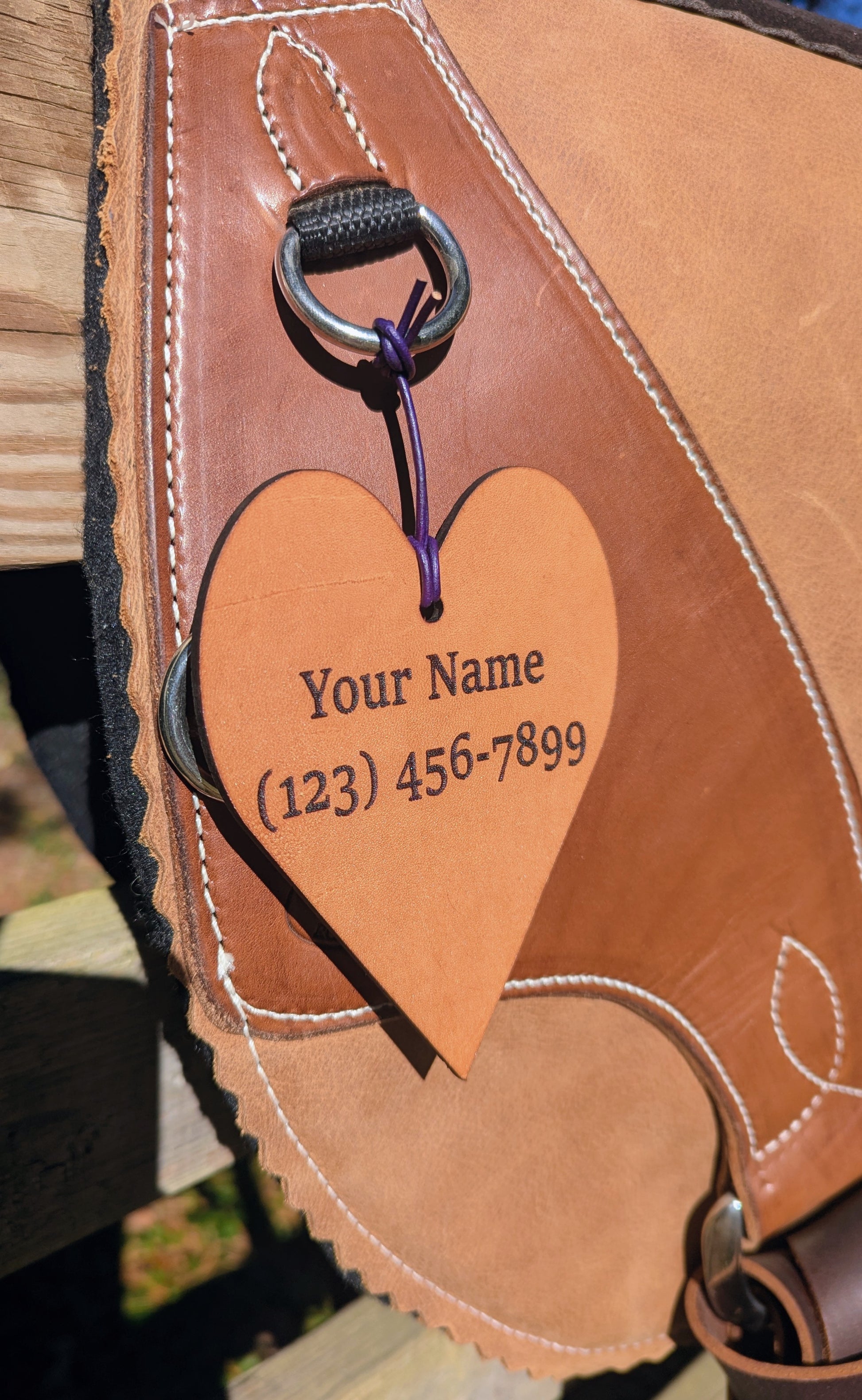 To Personalize: Add your desired shape and color to your cart, then click "view cart". Under "Order Special Instructions", add what name, phone number, or other information you would like on the saddle tag (under 50 characters). If you would like a brand or other special design added, please contact us before purchasing for a quote.